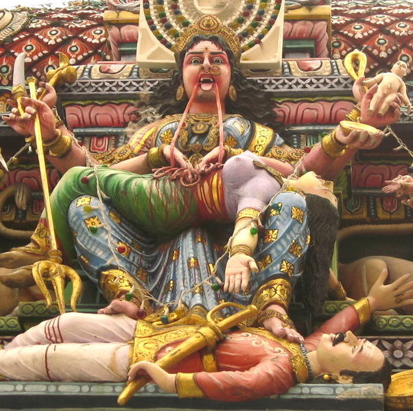 Alors elle se révéla. Dans une transformation terrifiante, ses bras se multiplièrent, son visage s’embrasa de puissance divine, et elle se jeta sur le couple royal :